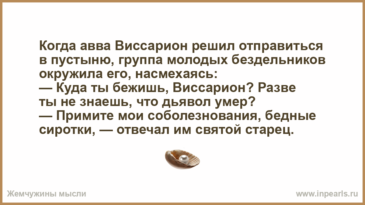 Когда авва Виссарион решил отправиться в пустыню, группа молодых бездельников окружила его, насмехаясь: