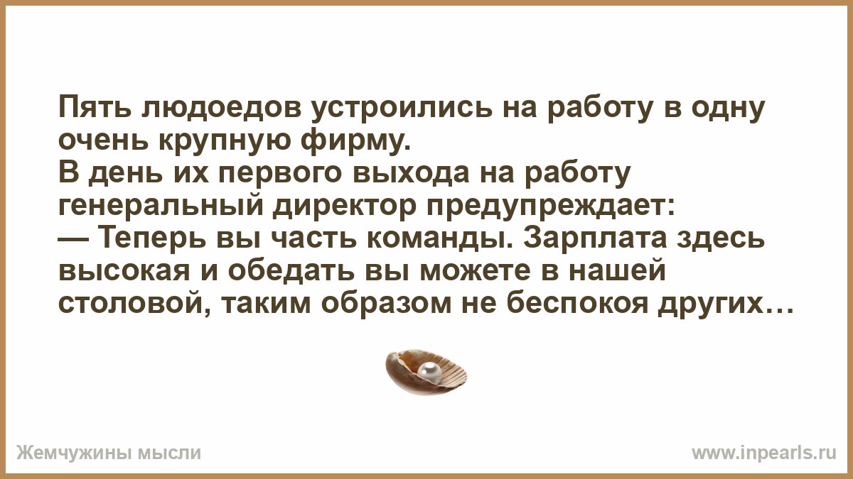 Пять людоедов устроились на работу в одну очень крупную фирму.