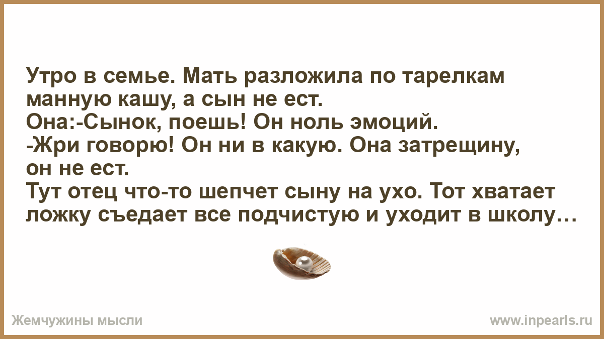 Мать, с любопытством:-А чего ты ему такое сказал?