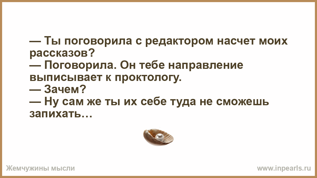 — Поговорила. Он тебе направление выписывает к проктологу.