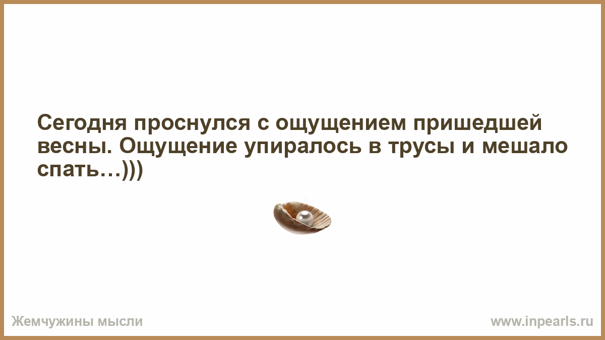 Сегодня проснулся с ощущением пришедшей весны. Ощущение упиралось в трусы и мешало спать…)))