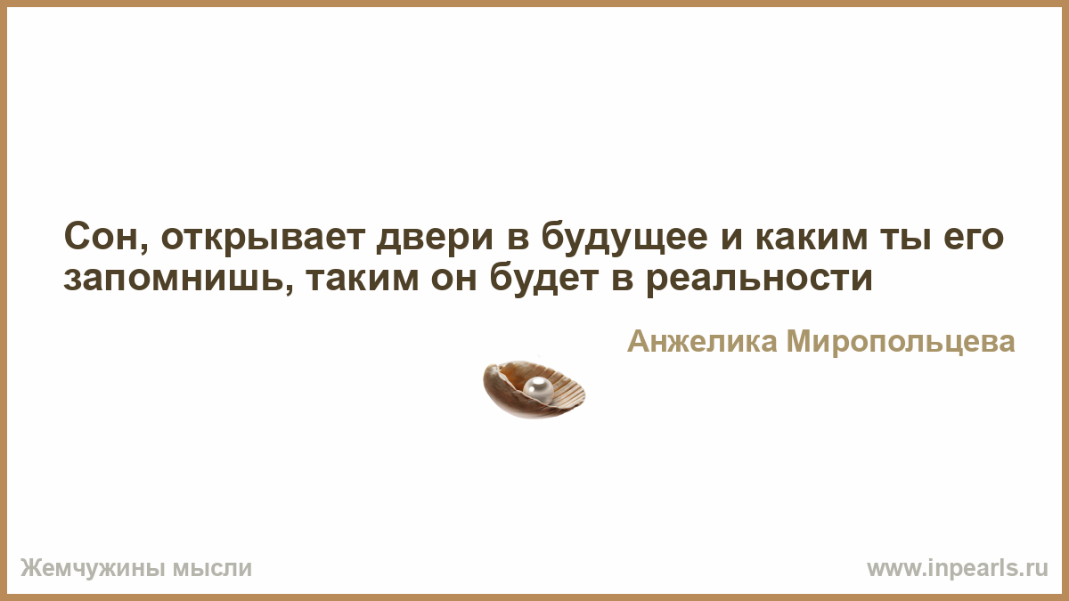 Сон, открывает двери в будущее и каким ты его запомнишь, таким он будет в реальности
