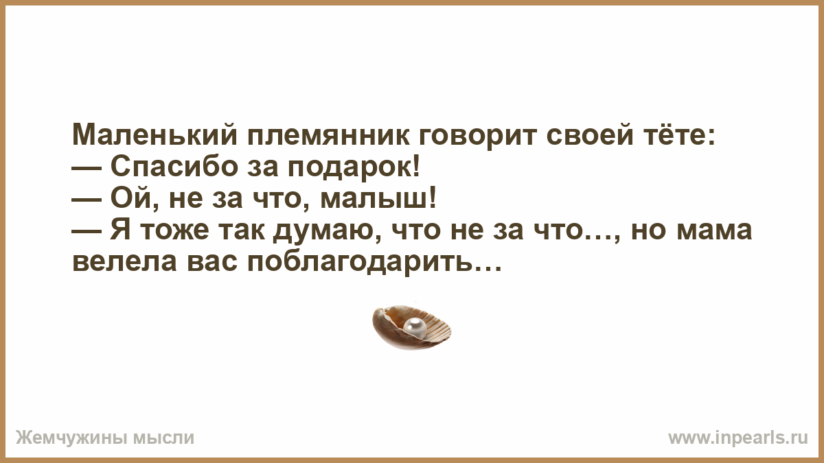 — Я тоже так думаю, что не за что…, но мама велела вас поблагодарить…