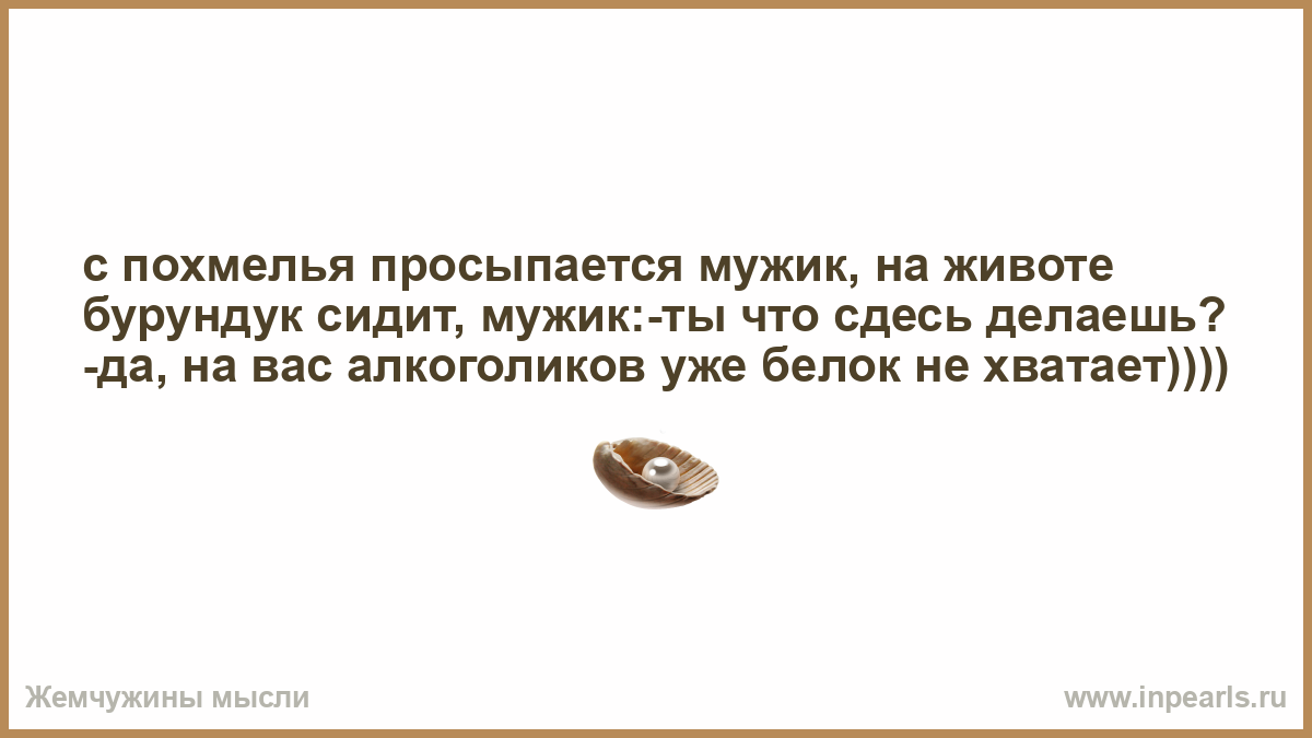 с похмелья просыпается мужик, на животе бурундук сидит, мужик:-ты что сдесь делаешь? -да, на вас алкоголиков уже белок не хватает))))