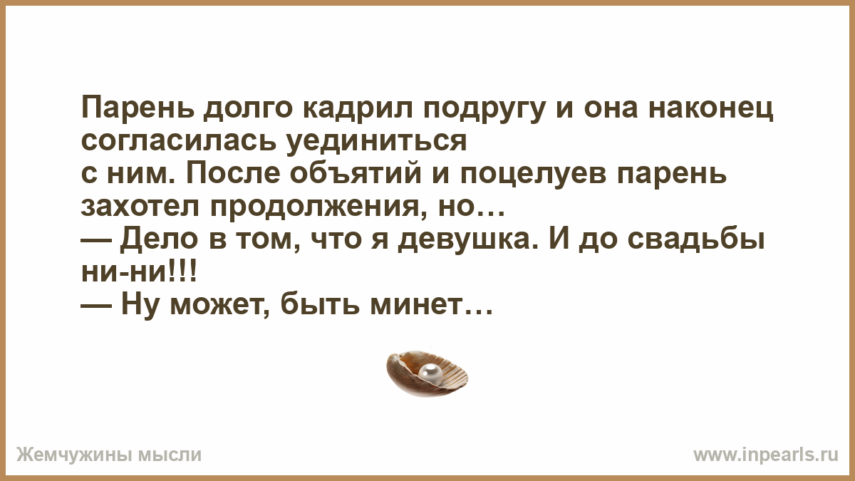 Парень долго кадрил подругу и она наконец согласилась уединиться