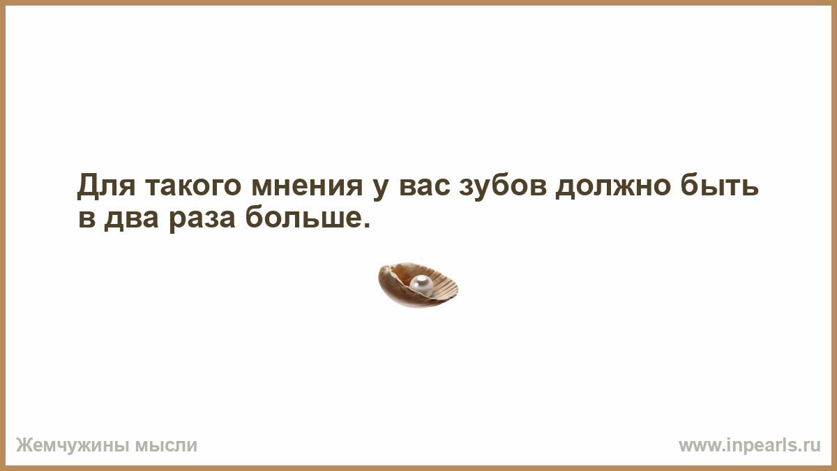 Для такого мнения у вас зубов должно быть в два раза больше.