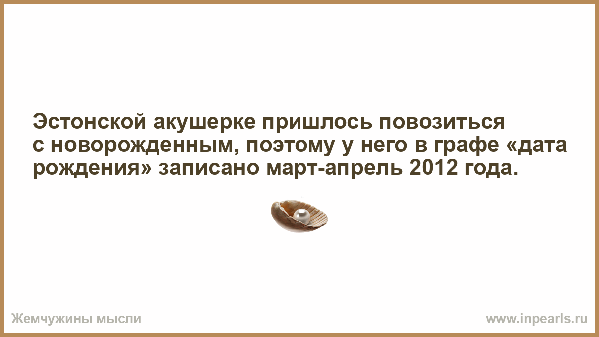 Эстонской акушерке пришлось повозиться с новорожденным, поэтому у него в графе «дата рождения» записано март-апрель 2012 года.