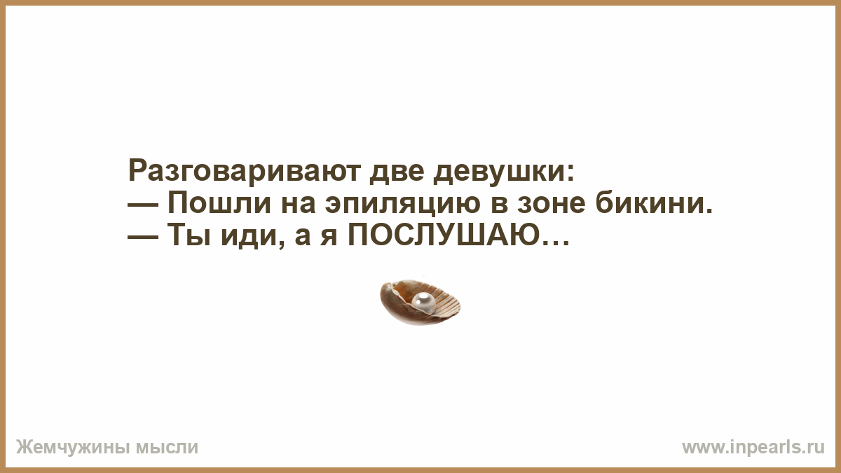 Разговаривают две девушки: — Пошли на эпиляцию в зоне бикини. — Ты иди, а я ПОСЛУШАЮ…