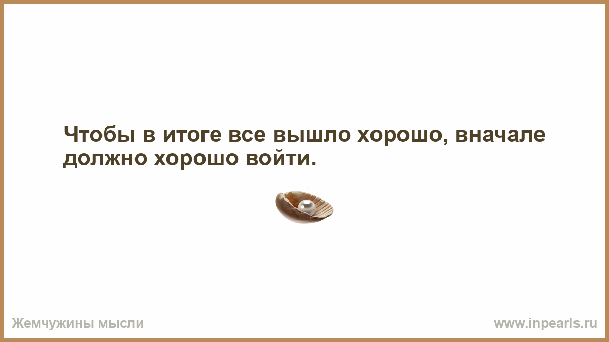 Чтобы в итоге все вышло хорошо, вначале должно хорошо войти.