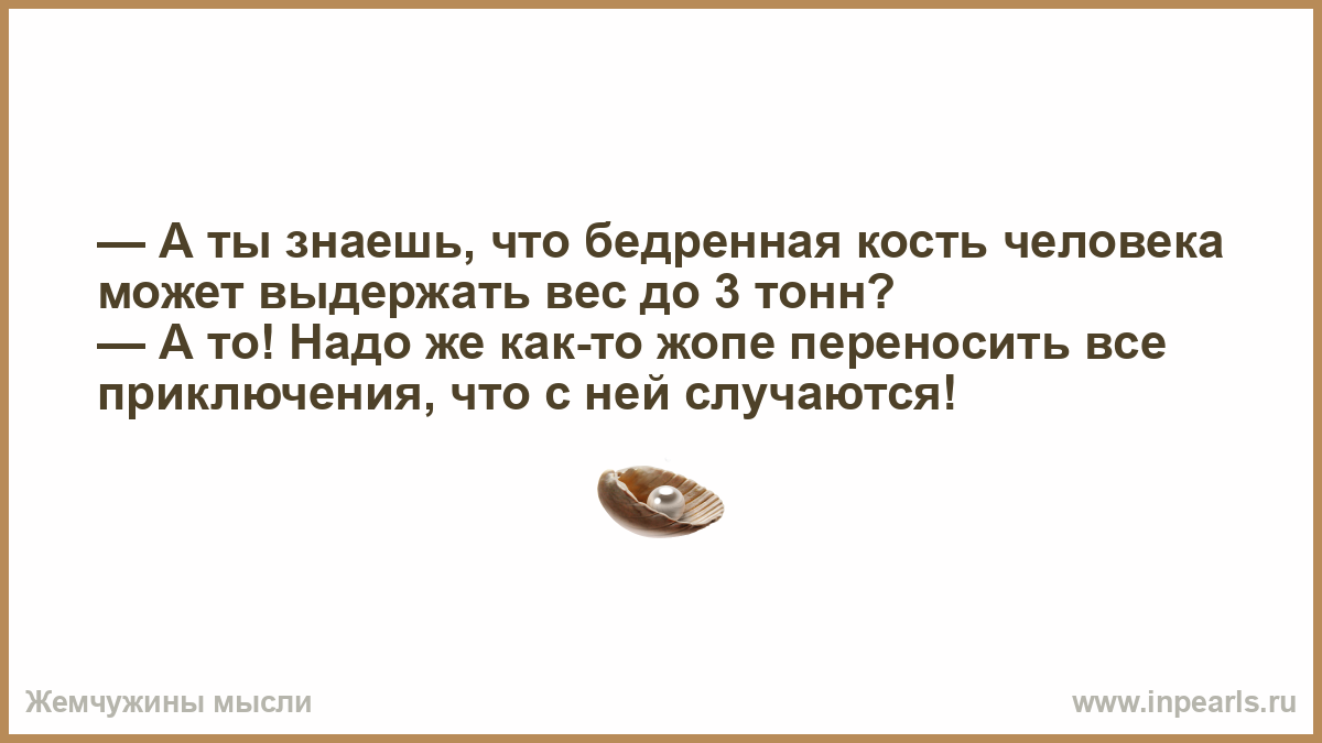 — А ты знаешь, что бедренная кость человека может выдержать вес до 3 тонн?