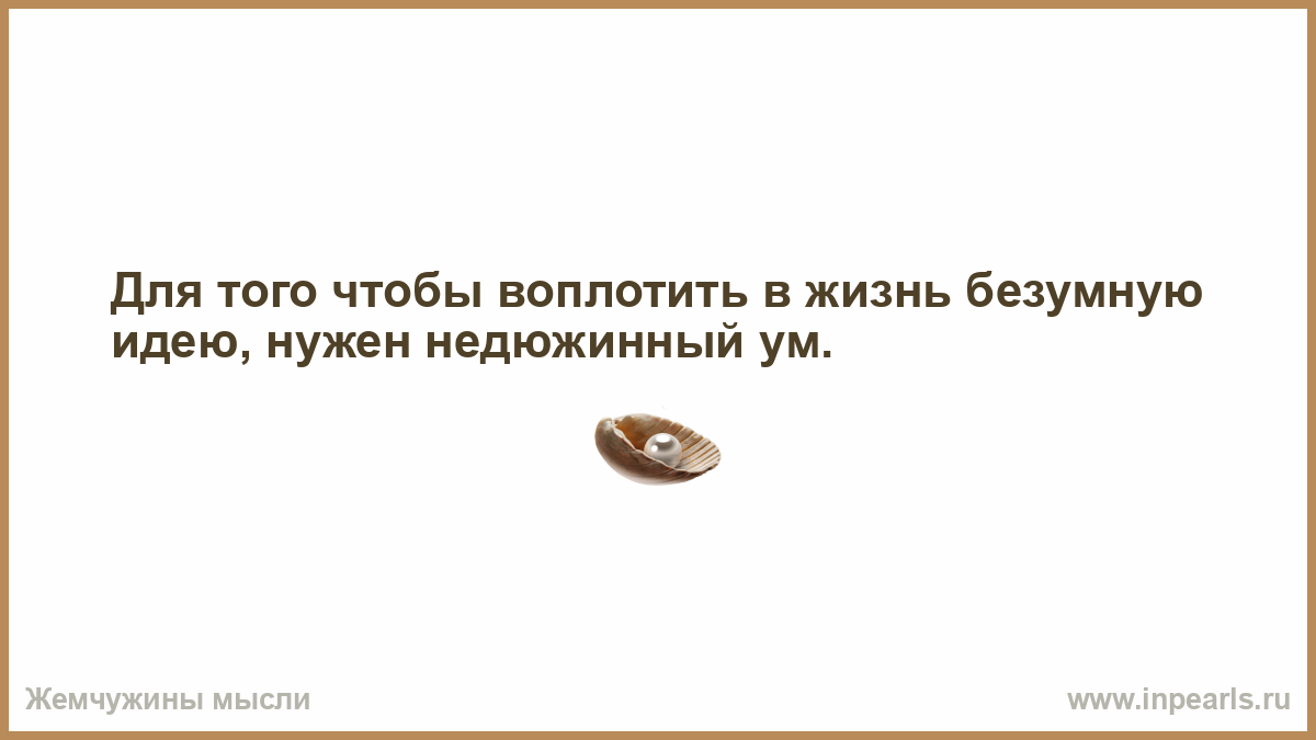 Для того чтобы воплотить в жизнь безумную идею, нужен недюжинный ум.