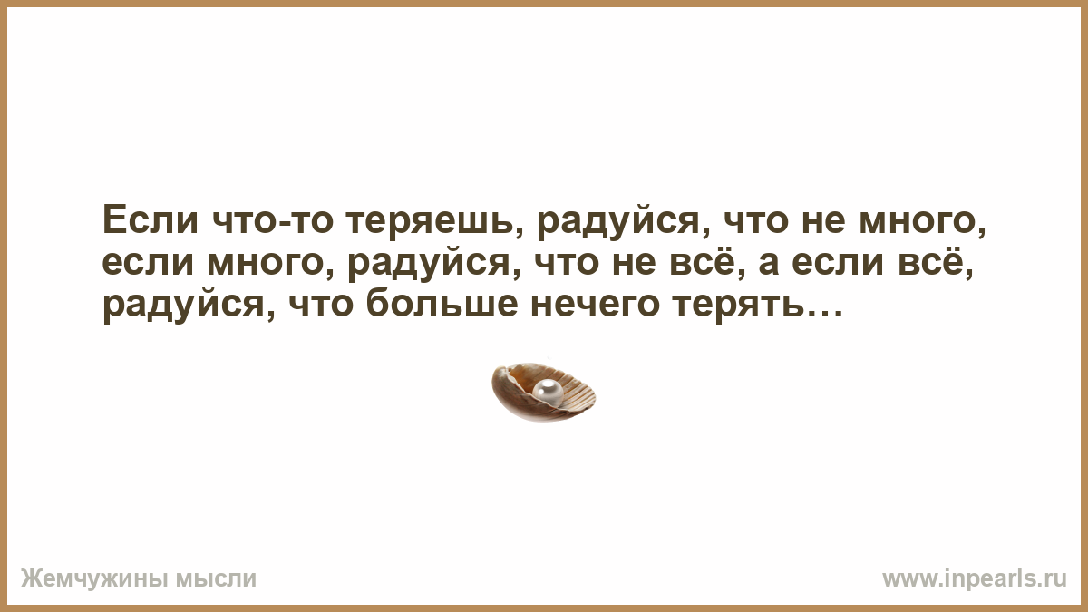 Если что-то теряешь, радуйся, что не много, если много, радуйся, что не всё, а если всё, радуйся, что больше нечего терять…