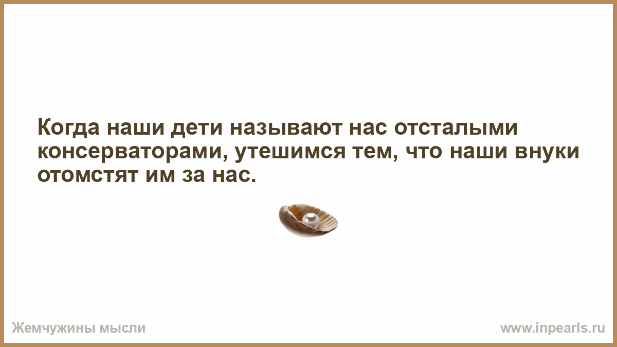 Когда наши дети называют нас отсталыми консерваторами, утешимся тем, что наши внуки отомстят им за нас.