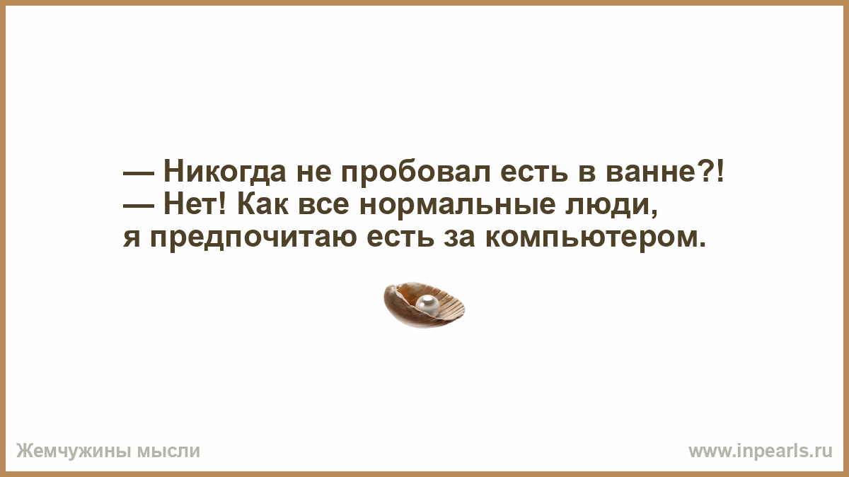 — Никогда не пробовал есть в ванне?! — Нет! Как все нормальные люди, я предпочитаю есть за компьютером.