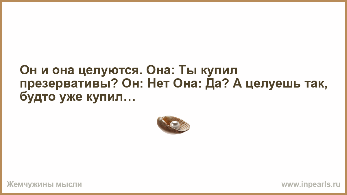 Он и она целуются. Она: Ты купил презервативы? Он: Нет Она: Да? А целуешь так, будто уже купил…