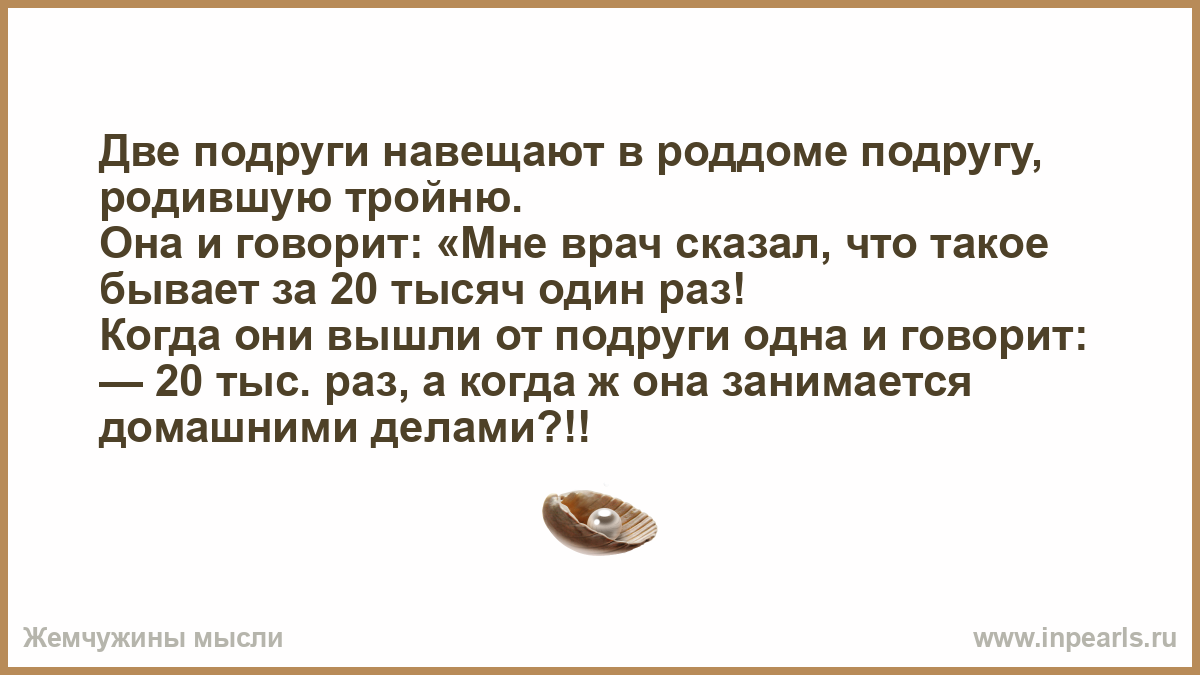 Она и говорит: «Мне врач сказал, что такое бывает за 20 тысяч один раз!