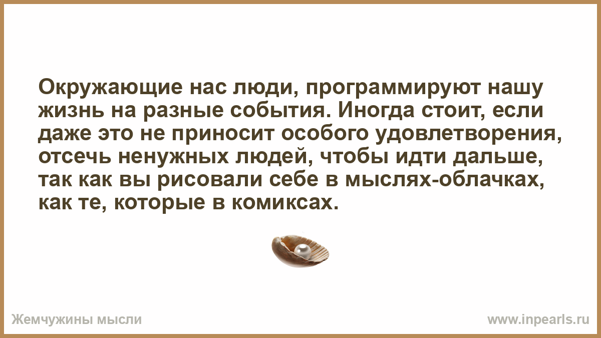 Окружающие нас люди, программируют нашу жизнь на разные события. Иногда стоит, если даже это не приносит особого удовлетворения, отсечь ненужных людей, чтобы идти дальше, так как вы рисовали себе в мыслях-облачках, как те, которые в комиксах.