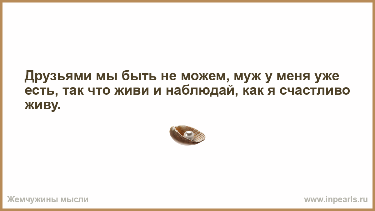 Друзьями мы быть не можем, муж у меня уже есть, так что живи и наблюдай, как я счастливо живу.