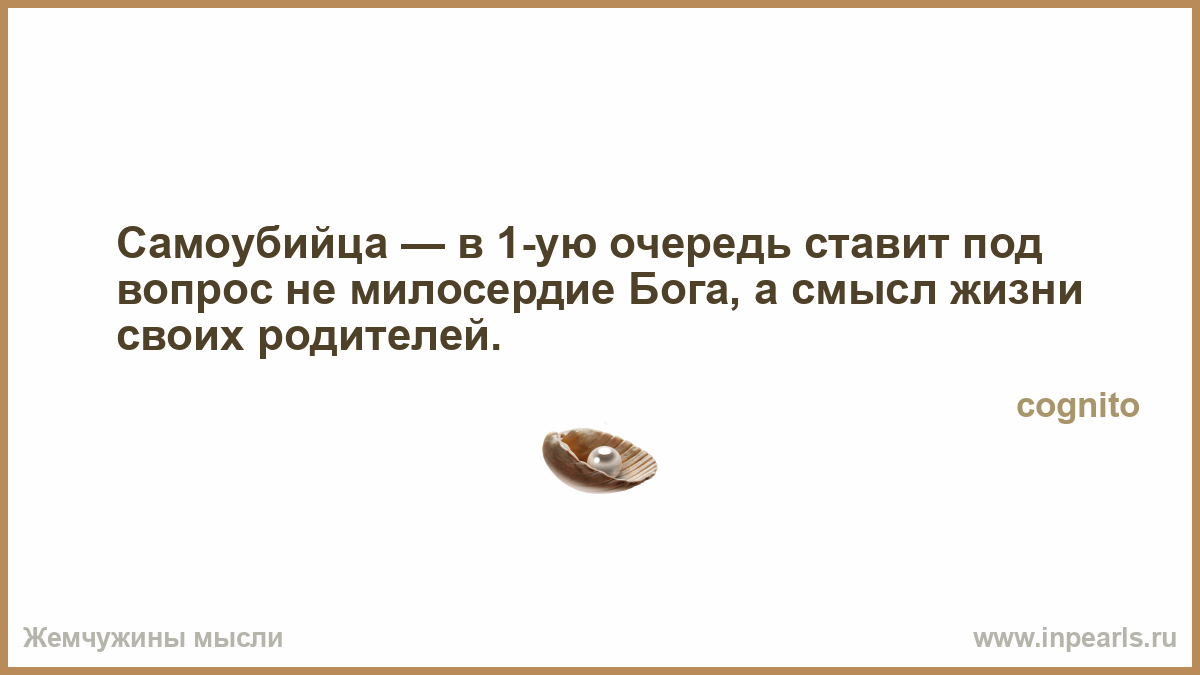 Самоубийца — в 1-ую очередь ставит под вопрос не милосердие Бога, а смысл жизни своих родителей.