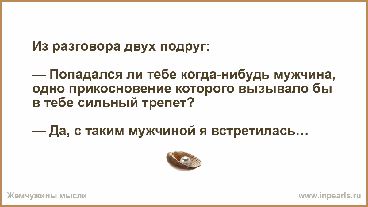 — Попадался ли тебе когда-нибудь мужчина, одно прикосновение которого вызывало бы в тебе сильный трепет?