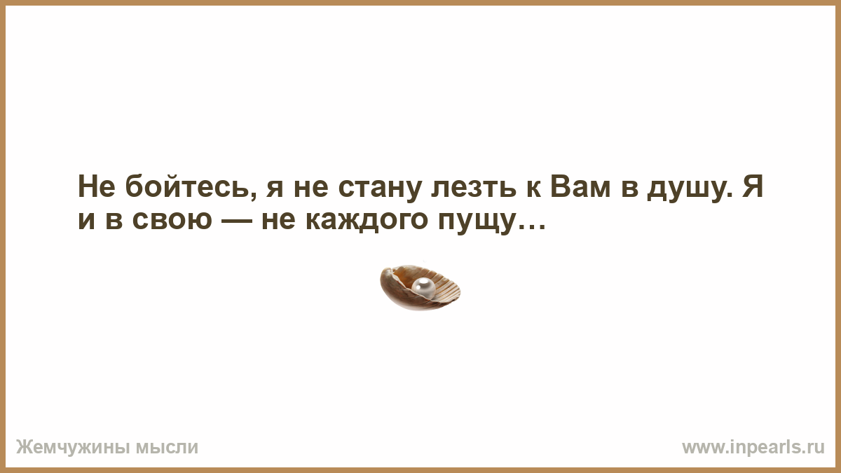 Не бойтесь, я не стану лезть к Вам в душу. Я и в свою — не каждого пущу…