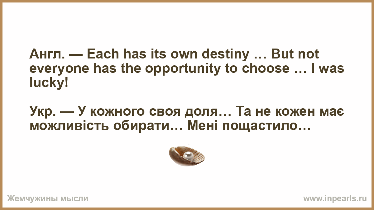 Укр. — У кожного своя доля… Та не кожен має можливість обирати… Мені пощастило!