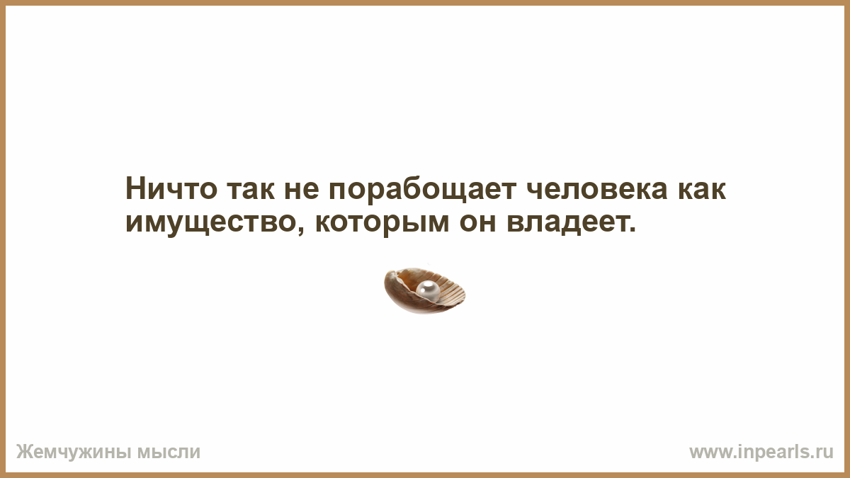 Ничто так не порабощает человека как имущество, которым он владеет.