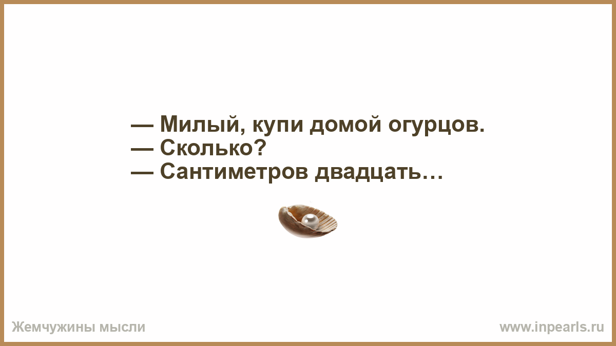 — Милый, купи домой огурцов.