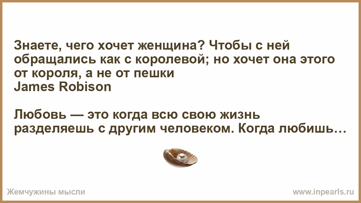 Знаете, чего хочет женщина? Чтобы с ней обращались как с королевой; но хочет она этого от короля, а не от пешки