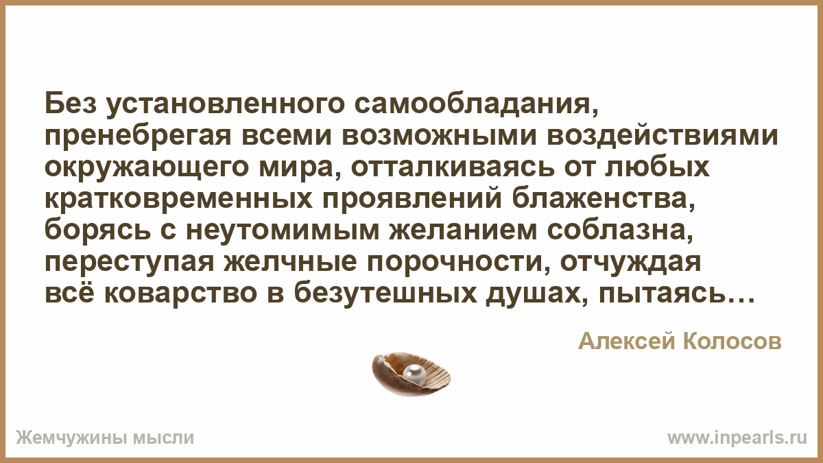 Без установленного самообладания, пренебрегая всеми возможными воздействиями