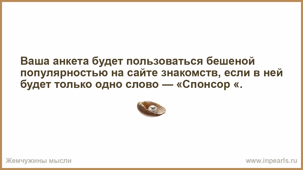 Ваша анкета будет пользоваться бешеной популярностью на сайте знакомств, если в ней будет только одно слово — «Спонсор «.