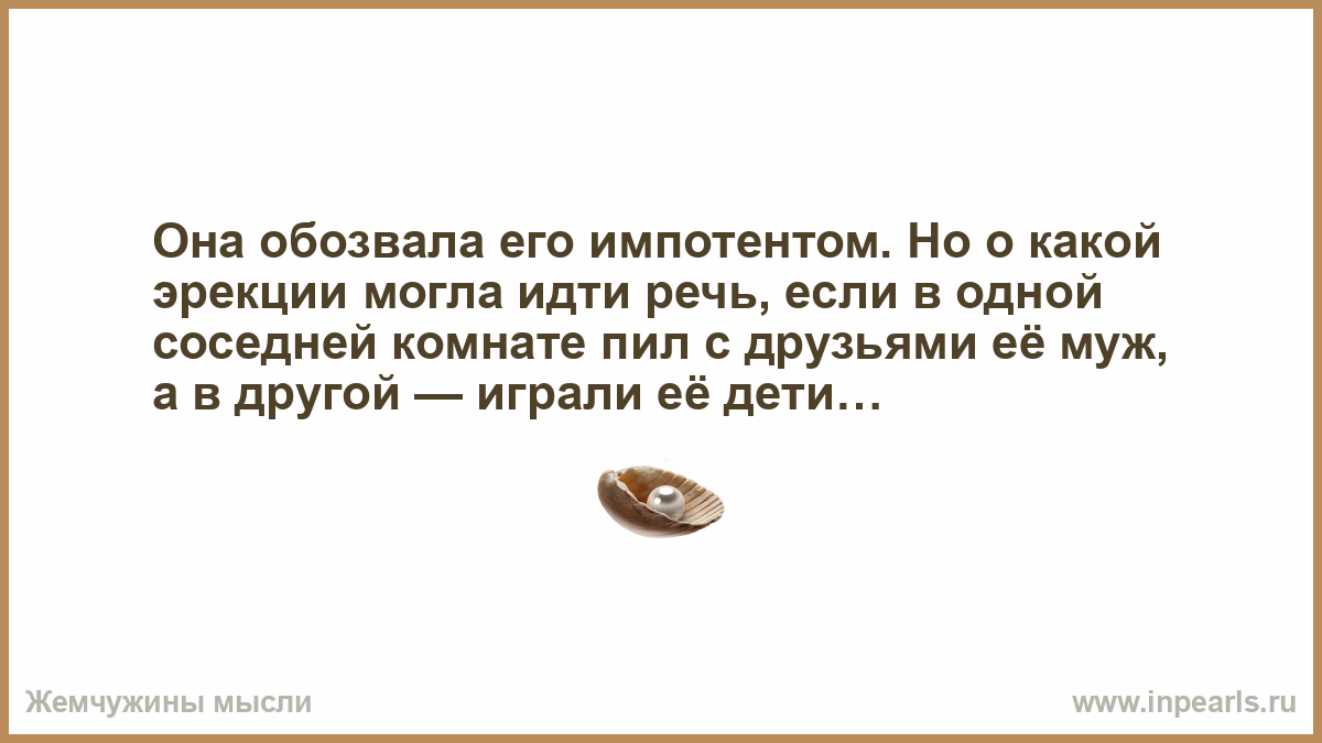 Она обозвала его импотентом. Но о какой эрекции могла идти речь, если в одной соседней комнате пил с друзьями её муж, а в другой — играли её дети…