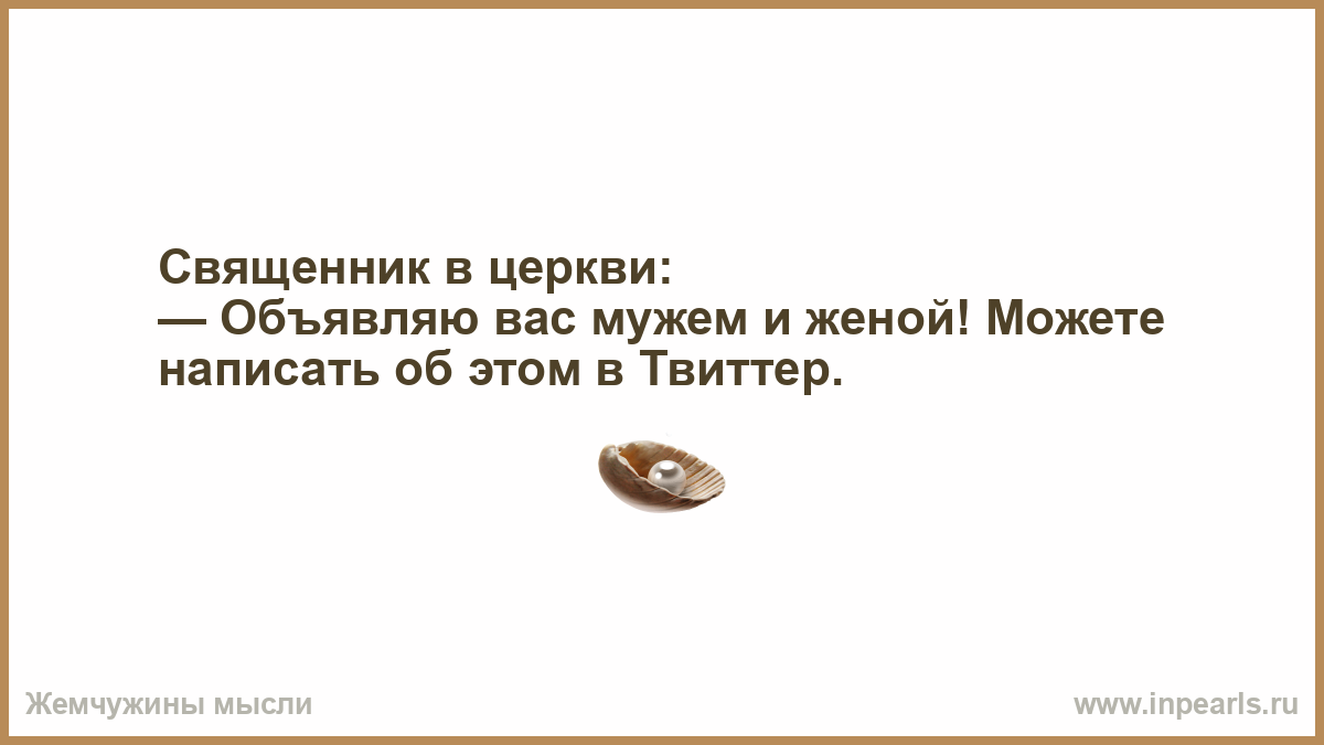 Священник в церкви: — Объявляю вас мужем и женой! Можете написать об этом в Твиттер.