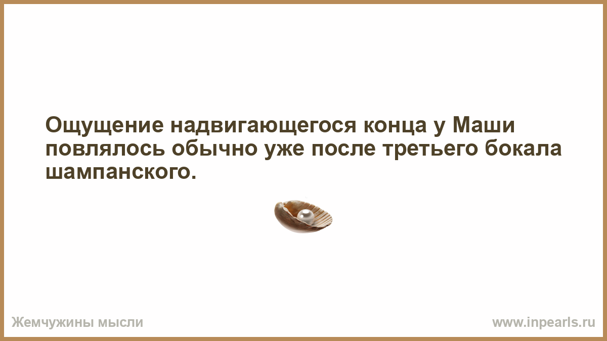 Ощущение надвигающегося конца у Маши повлялось обычно уже после третьего бокала шампанского.