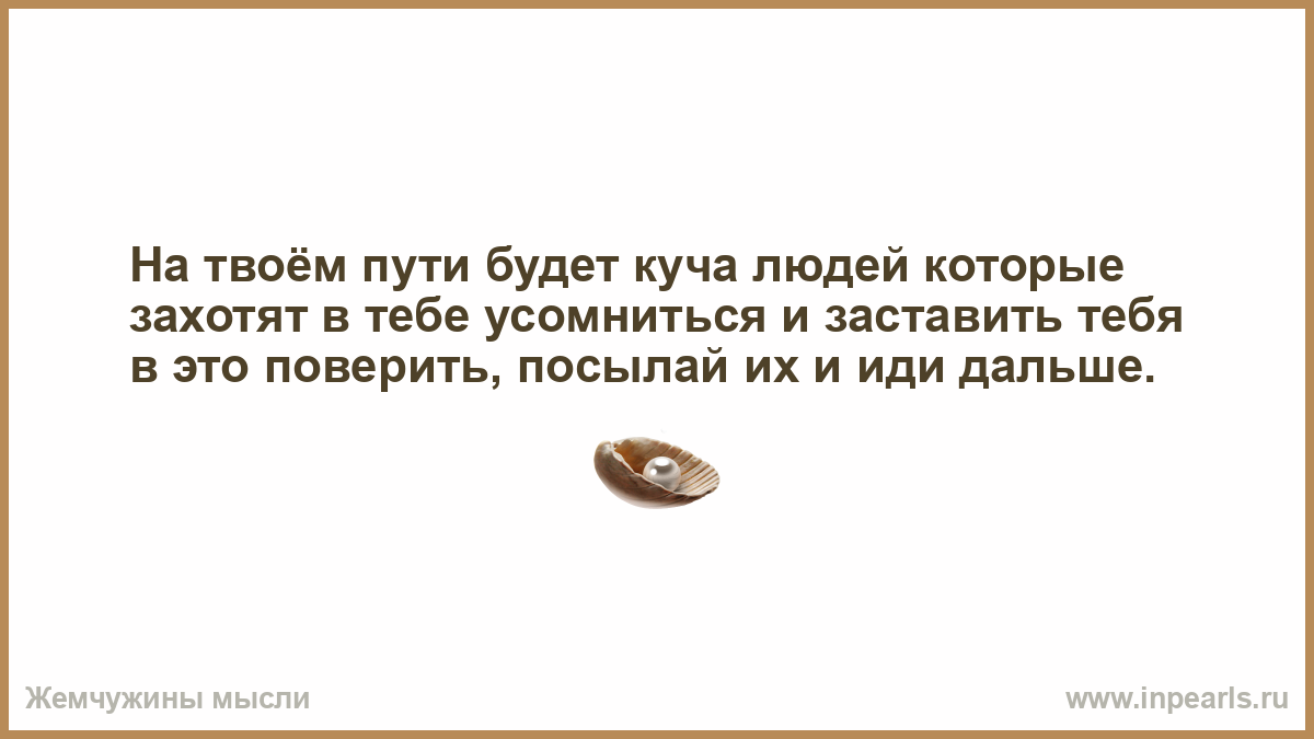 На твоём пути будет куча людей которые захотят в тебе усомниться и заставить тебя в это поверить, посылай их и иди дальше.