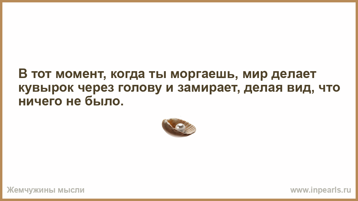 В тот момент, когда ты моргаешь, мир делает кувырок через голову и замирает, делая вид, что ничего не было.