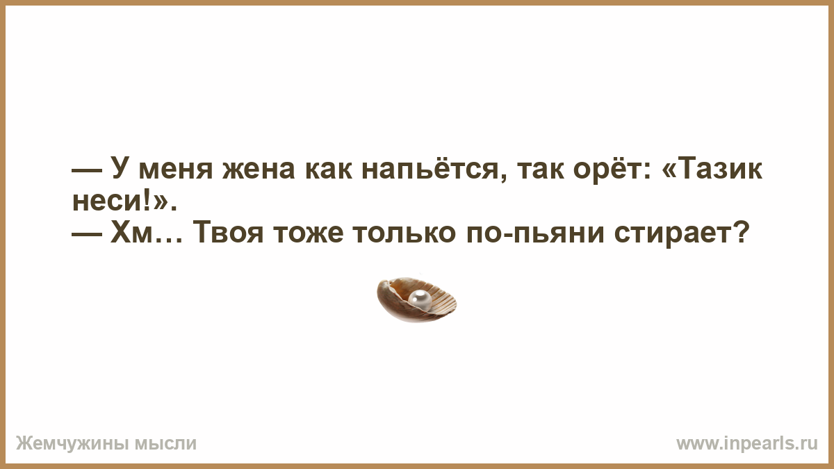 — У меня жена как напьётся, так орёт: «Тазик неси!». — Хм… Твоя тоже только по-пьяни стирает?