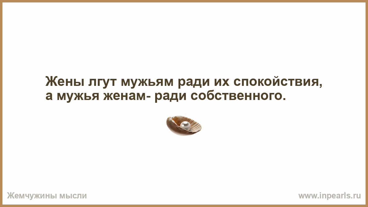 Жены лгут мужьям ради их спокойствия, а мужья женам- ради собственного.