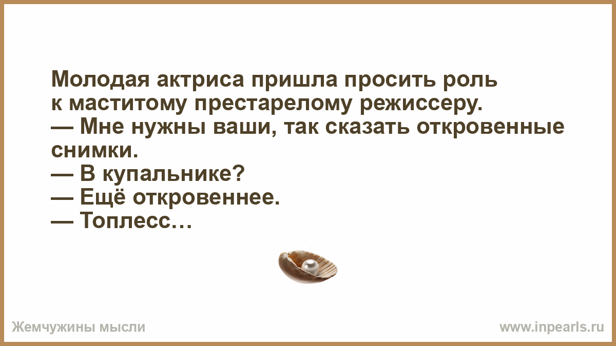 — Ну да, — прошептал режиссёр с вожделением, — но только ещё откровеннее.