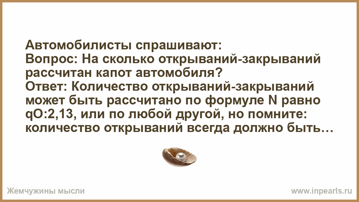 Ответ: Количество открываний-закрываний может быть рассчитано по формуле N равно qO:2,13, или по любой другой, но помните: количество открываний всегда должно быть меньше или равно количеству закрываний!