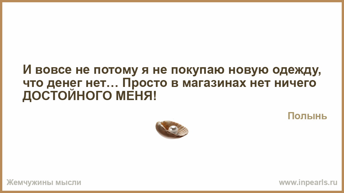 И вовсе не потому я не покупаю новую одежду, что денег нет… Просто в магазинах нет ничего ДОСТОЙНОГО МЕНЯ!