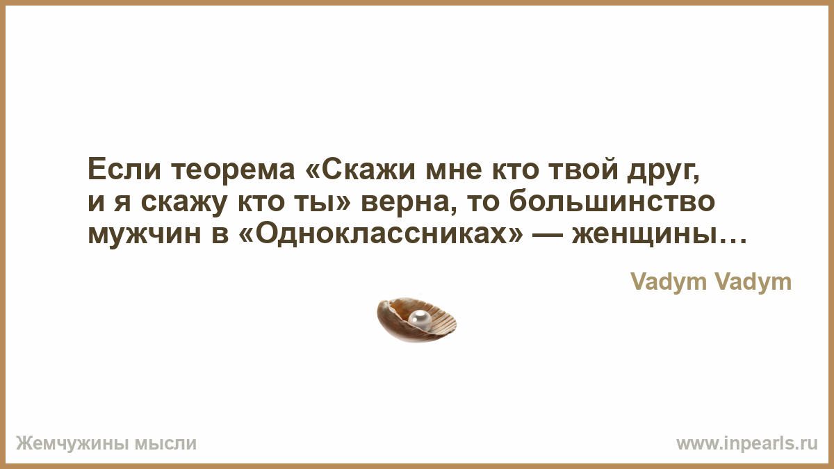 Если теорема «Скажи мне кто твой друг, и я скажу кто ты» верна, то большинство мужчин в «Одноклассниках» — женщины…