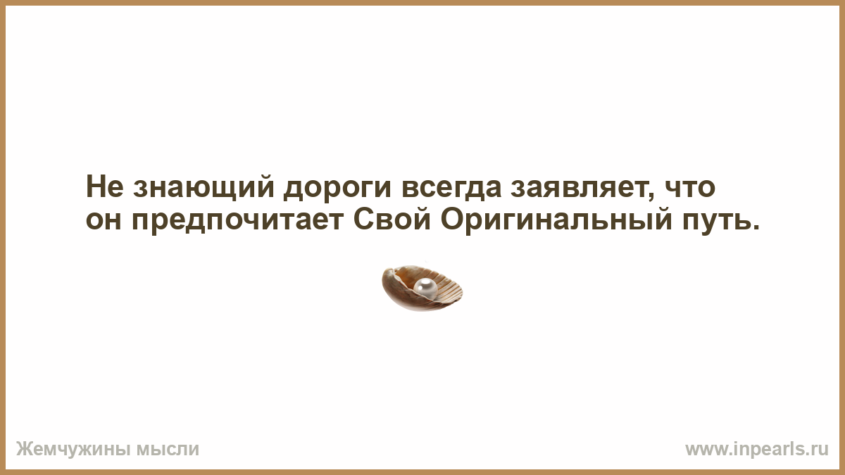 Не знающий дороги всегда заявляет, что он предпочитает Свой Оригинальный путь.