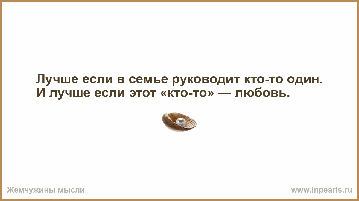 Лучше если в семье руководит кто-то один. И лучше если этот «кто-то» — любовь.