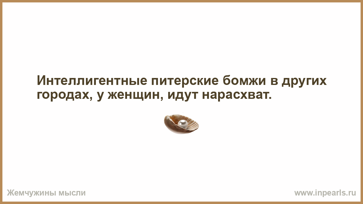 Интеллигентные питерские бомжи в других городах, у женщин, идут нарасхват.