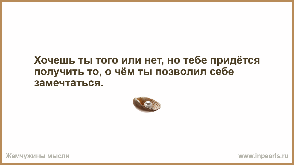 Хочешь ты того или нет, но тебе придётся получить то, о чём ты позволил себе замечтаться.