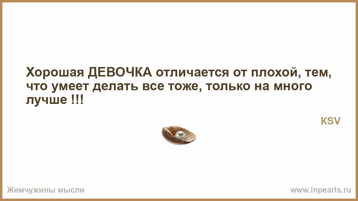 Хорошая ДЕВОЧКА отличается от плохой, тем, что умеет делать все тоже, только на много лучше !!!