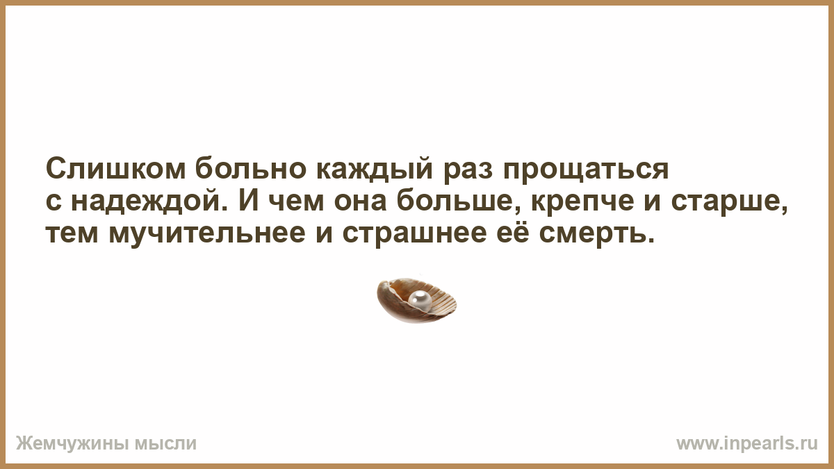 Слишком больно каждый раз прощаться с надеждой. И чем она больше, крепче и старше, тем мучительнее и страшнее её смерть.