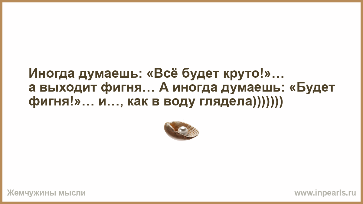 Иногда думаешь: «Всё будет круто!»… а выходит фигня… А иногда думаешь: «Будет фигня!»… и…, как в воду глядела)))))))