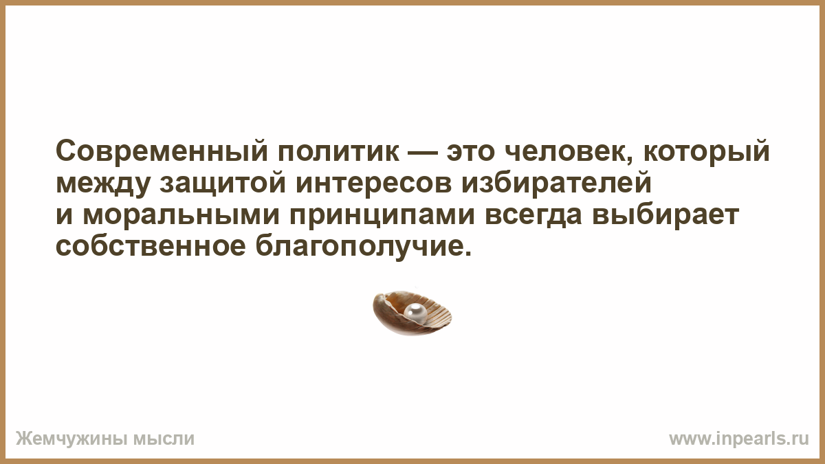 Современный политик — это человек, который между защитой интересов избирателей и моральными принципами всегда выбирает собственное благополучие.